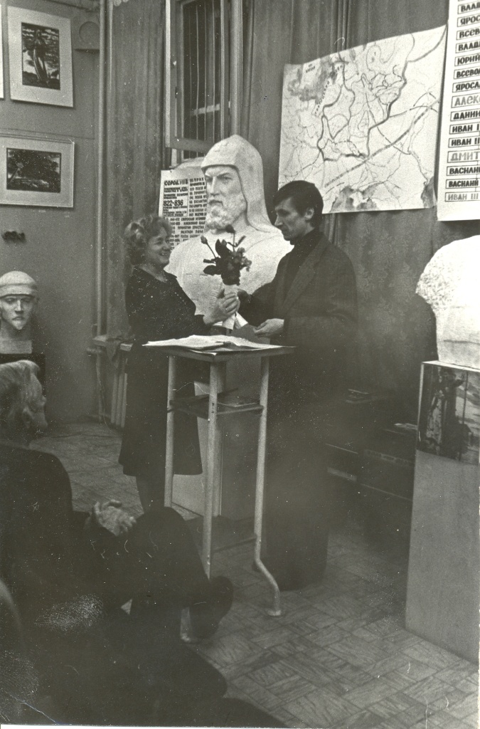 Председатель секции пропаганды Москворецкого отд. ВООПИиК А.А.Васильев на открытии в помещении Москворецкого отд. выставки "Художники России к 600-летию Куликовской битвы". /26 ноября 1980 г./